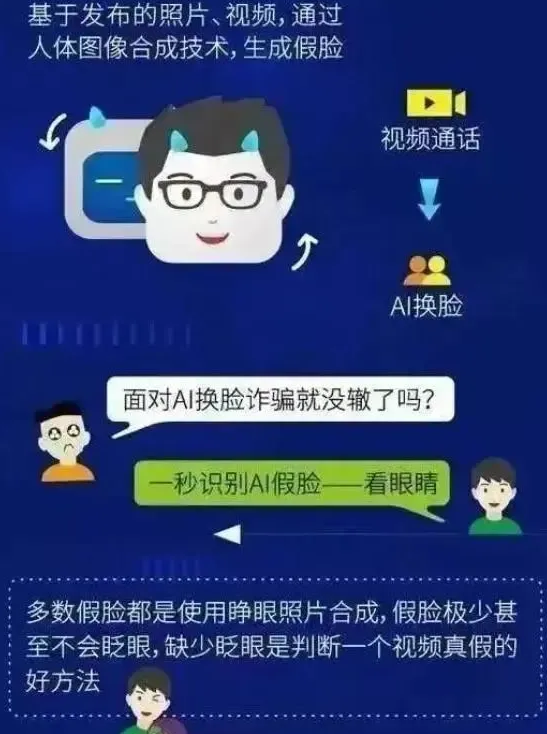 7.AI换脸冒充子女诈骗。不法分子利用老人年关心子女的心理,采用换脸和拟声技术,通过人工智能算法对受害人的面部和声音进行模拟,和受害老人进行视频通话,从而实现对受害人进行欺诈。通过这种方式,骗子们可以轻易地模拟出亲友或者领导的声音和面部表情,让受害人误以为是真正的本人在进行通话,从而骗取钱财。